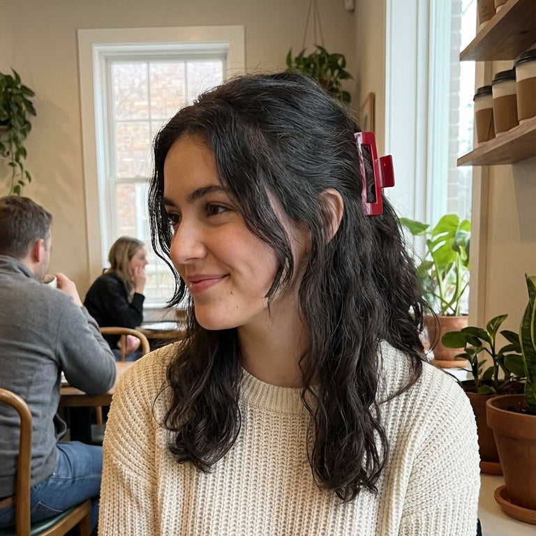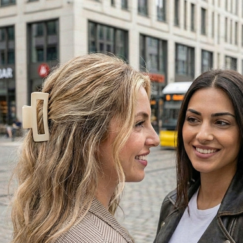 Die erste Haarklammer, die sich deinem Kopf anpasst. Kein Druck, kein Zerbrechen, nur perfekter Halt den ganzen Tag. Das "Cloud Clip" Design sorgt für ein Gefühl der Schwerelosigkeit.